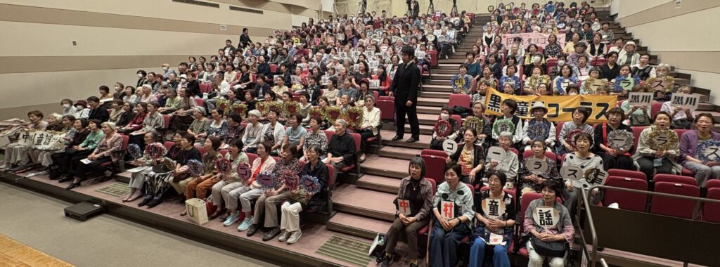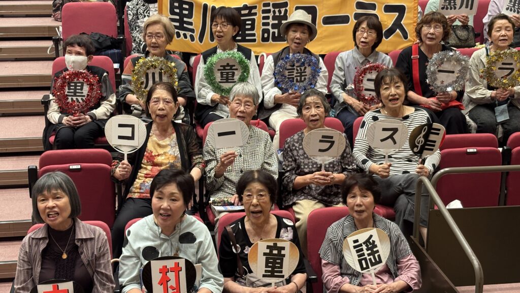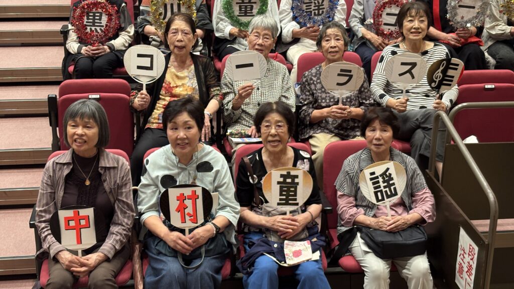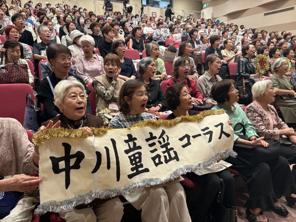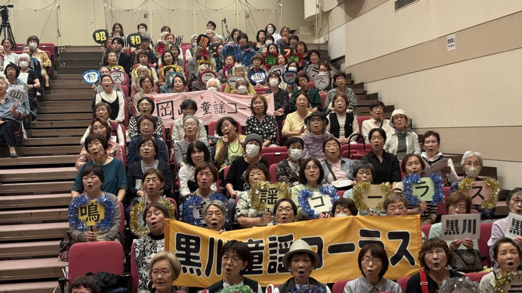 中部東海地域の秋の名曲合唱会にて、それぞれの地域の童謡コーラスのご自慢のプラカードを披露しています。豪華!カラフル!!素敵なプラカードが大集合しました☆